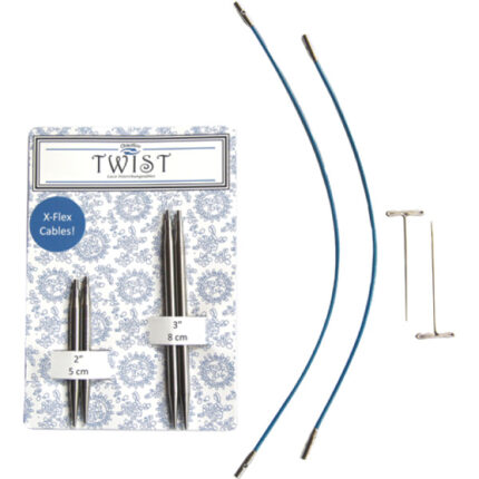 Sada výměnných kovových jehlic ChiaoGoo ve zkrácené délce 5 a 8 cm. Obsahuje: 2 páry zkrácených jehlic 5 a 8